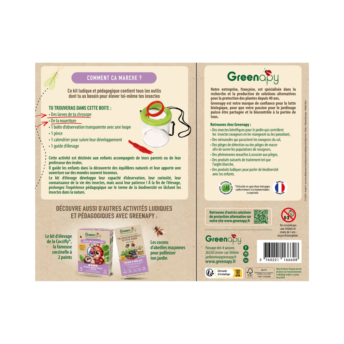 Ce kit pédagogique d'élevage permet aux enfants de découvrir la vie des chrysopes