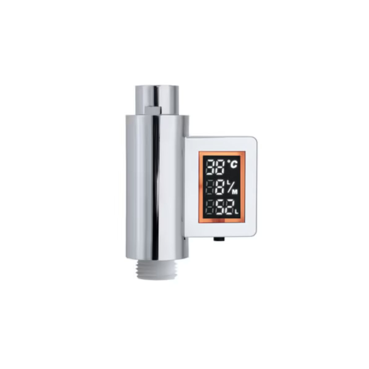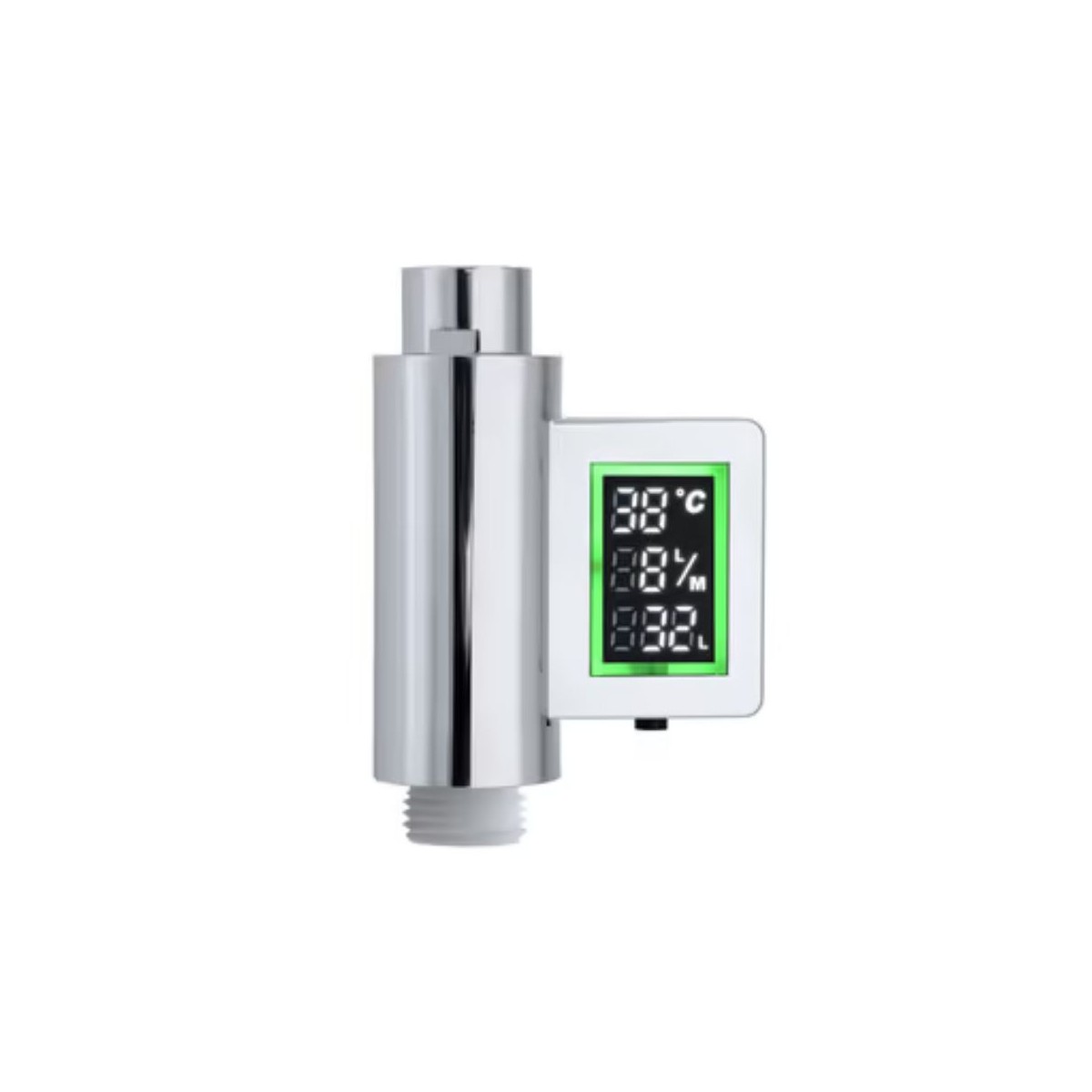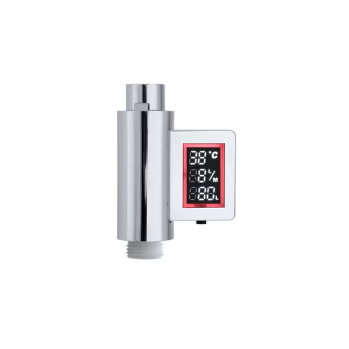 L’écran digital indique le débit du pommeau, généralement compris entre 16 et 20 L/min, ce qui représente une consommation importante. Pour diminuer cette consommation sans perte de confort, il est conseillé d’installer un pommeau hydro-économe ou un régulateur de débit (8 à 10 L/min). Le compteur affiche également la consommation en litres pendant la douche, ce qui rend concret l’impact de la durée et du débit sur votre consommation. Limiter la douche à 5 minutes reste l’objectif recommandé pour économiser l’eau. Grâce à l’affichage LED, vous voyez immédiatement votre progression : vert jusqu’à 40 L, orange entre 40 et 60 L, et rouge au-delà de 60 L.