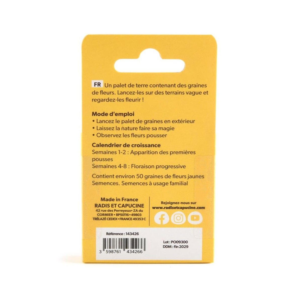 Apportez une touche de nature en ville avec la plaquette de fleurs jaunes à lancer. Fabriquée à la main en France, elle refleurit les espaces oubliés facilement et naturellement.