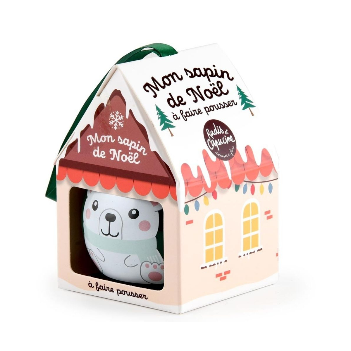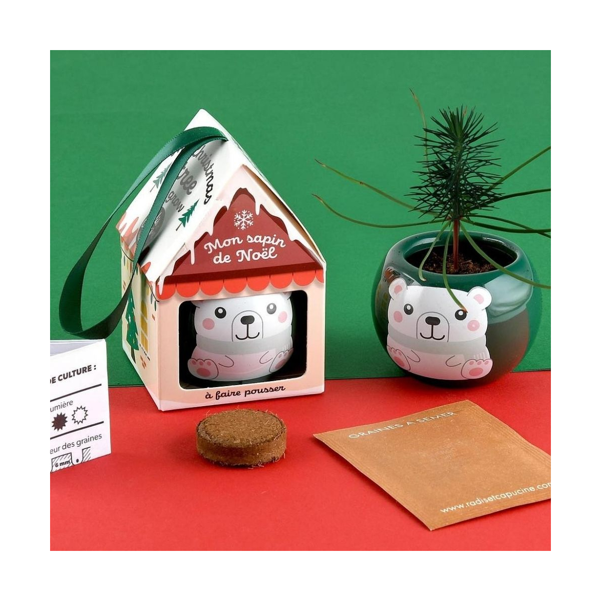 Maison sapin de Noël – Épicéa à faire pousser. Un cadeau original et poétique, idéal pour émerveiller petits et grands et prolonger la magie de Noël avec un sapin vivant.