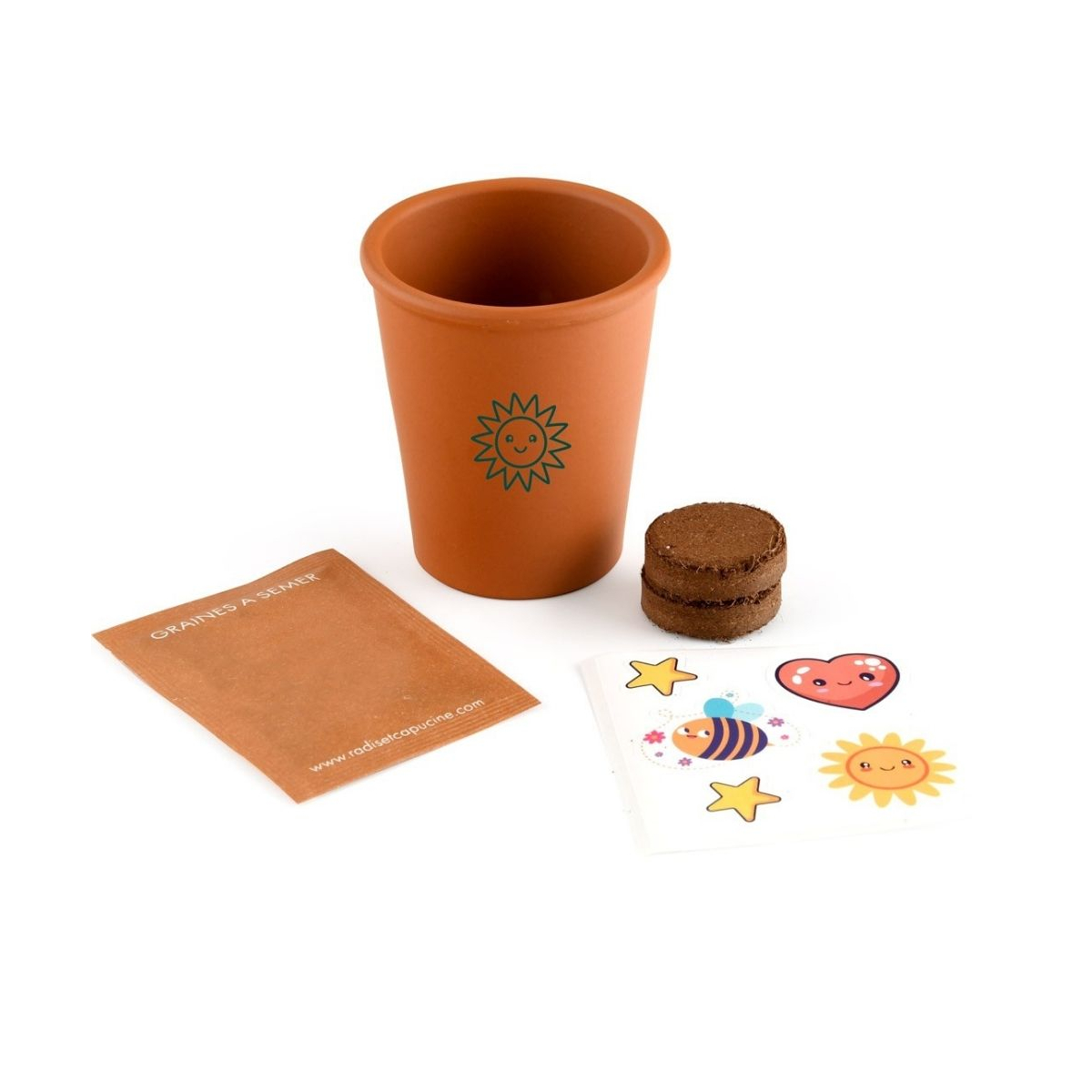 Compact et simple d’utilisation, ce kit contient tout le nécessaire pour réussir sa première plante : pot, terre compressée, graines et fiche de culture multilingue. Assemblé en France avec des graines de qualité, il constitue un cadeau original et magique pour éveiller les enfants à la nature, leur apprendre la patience et leur offrir la joie de voir pousser leur propre fleur 🌿.