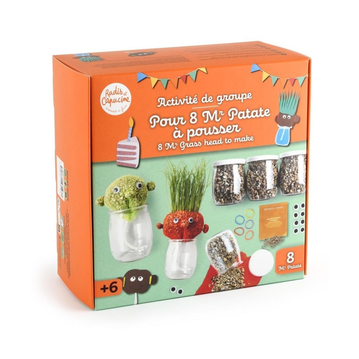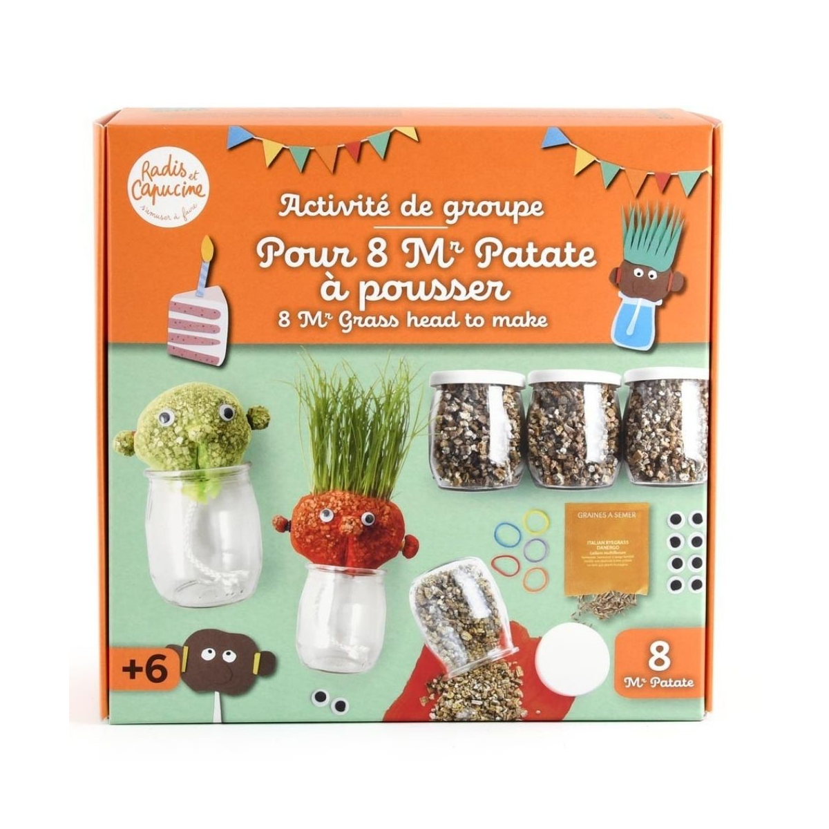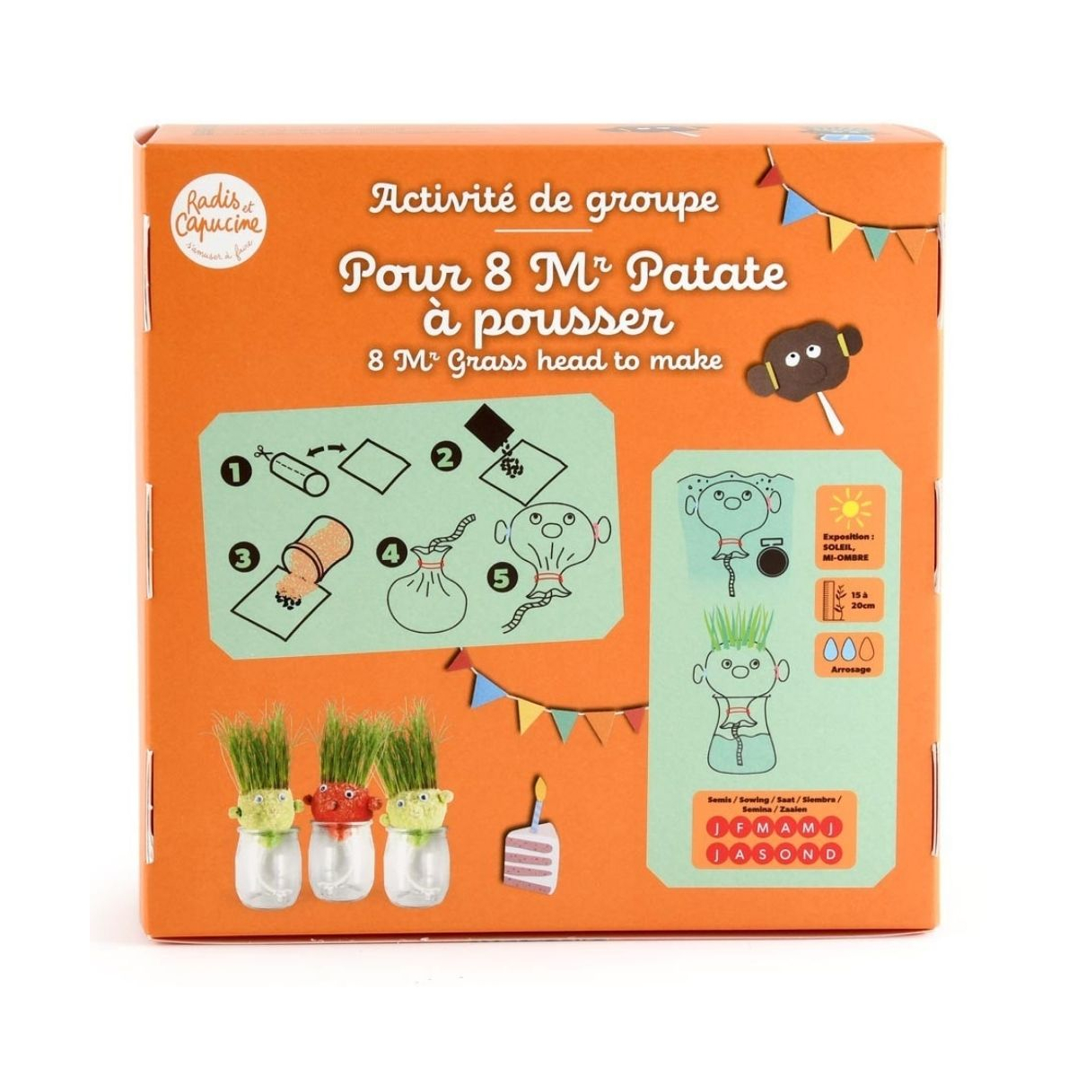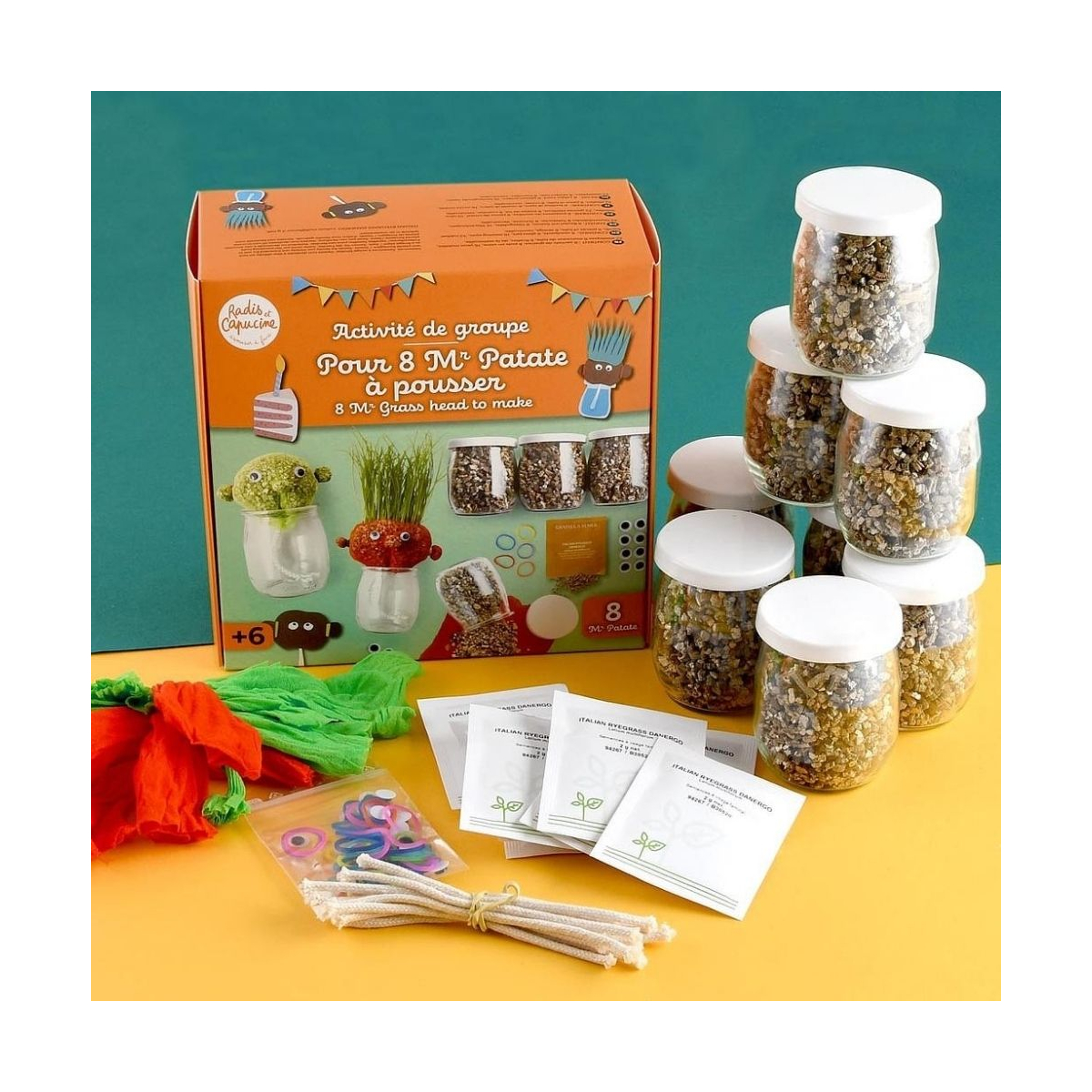 Coffret activité Monsieur Patate – kit créatif pour enfants. Faites pousser une chevelure de graines sur Monsieur Patate, idéal pour s’amuser et découvrir la germination de façon ludique.