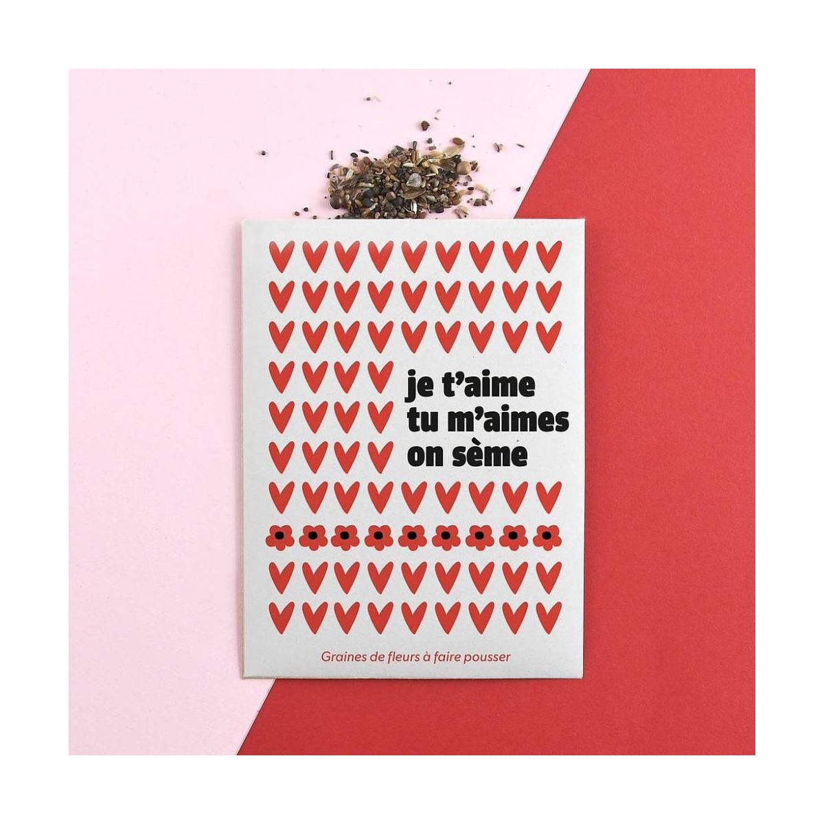 Sachet message « Je t’aime, tu m’aimes, on sème » avec graines de fleurs en mélange. Une idée cadeau originale et poétique pour offrir des fleurs à faire pousser.