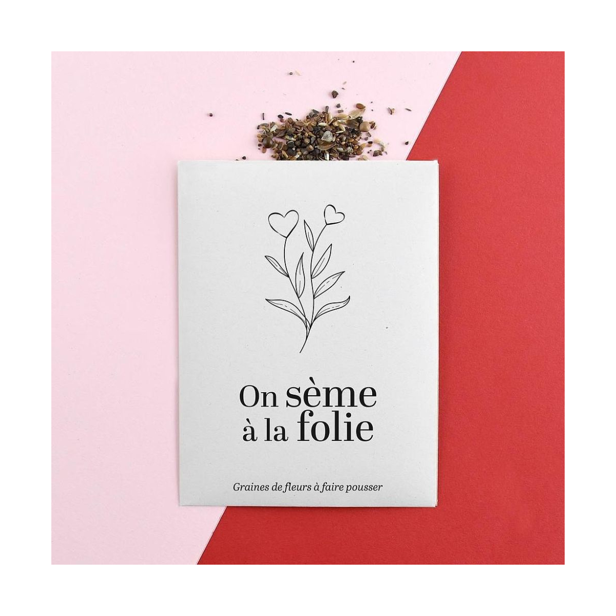 Sachet message « On sème à la folie » avec graines de fleurs en mélange. Une idée cadeau originale, joyeuse et poétique pour semer la couleur et la nature.