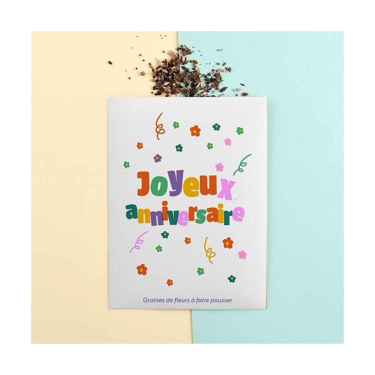 Sachet message « Joyeux anniversaire » avec graines de fleurs en mélange. Une idée cadeau poétique, festive et durable pour célébrer un anniversaire.