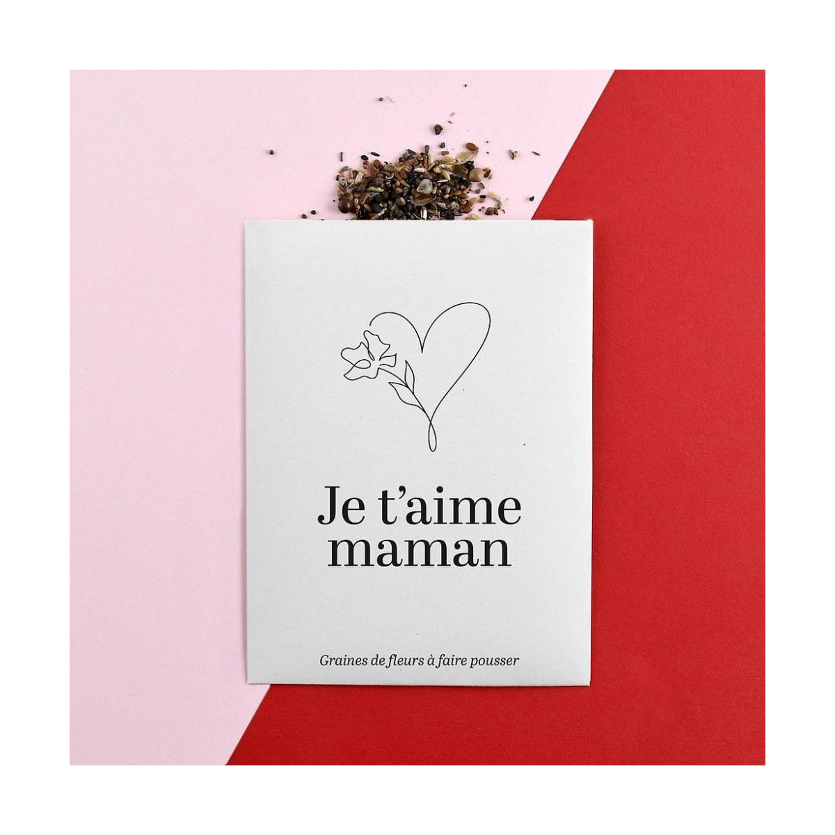 Sachet message « Maman je t’aime » avec graines de fleurs en mélange. Une idée cadeau poétique, tendre et durable pour dire “je t’aime” à votre maman.