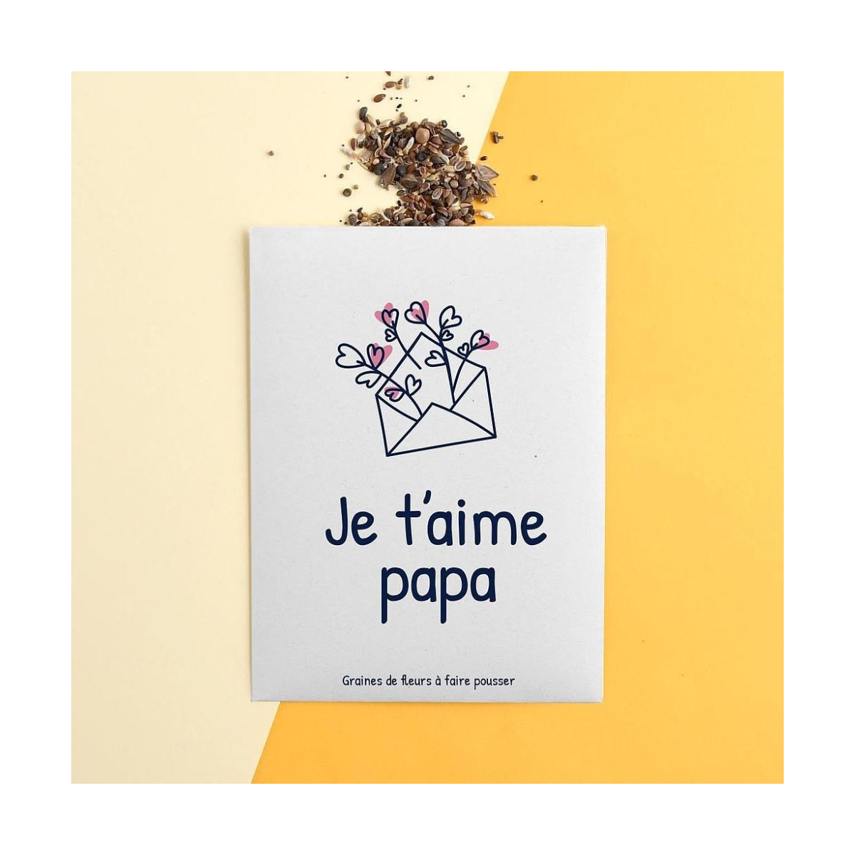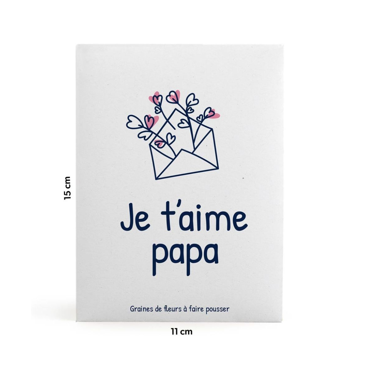 Sachet message « Papa je t’aime » avec graines de fleurs en mélange. Une idée cadeau poétique, tendre et durable pour dire “je t’aime” à votre papa.