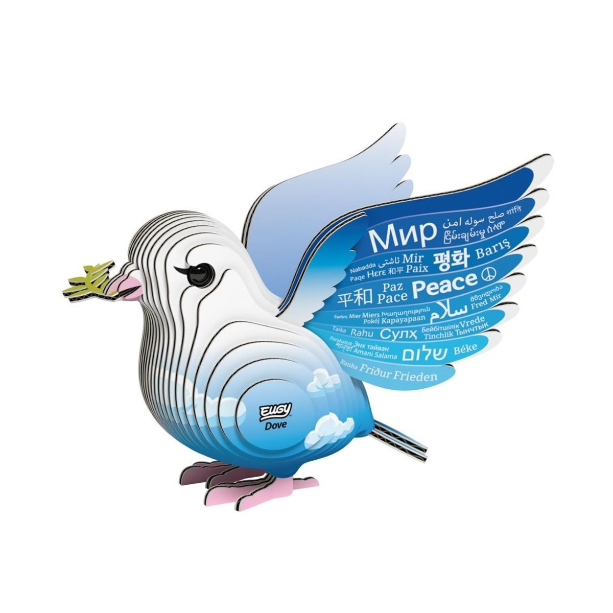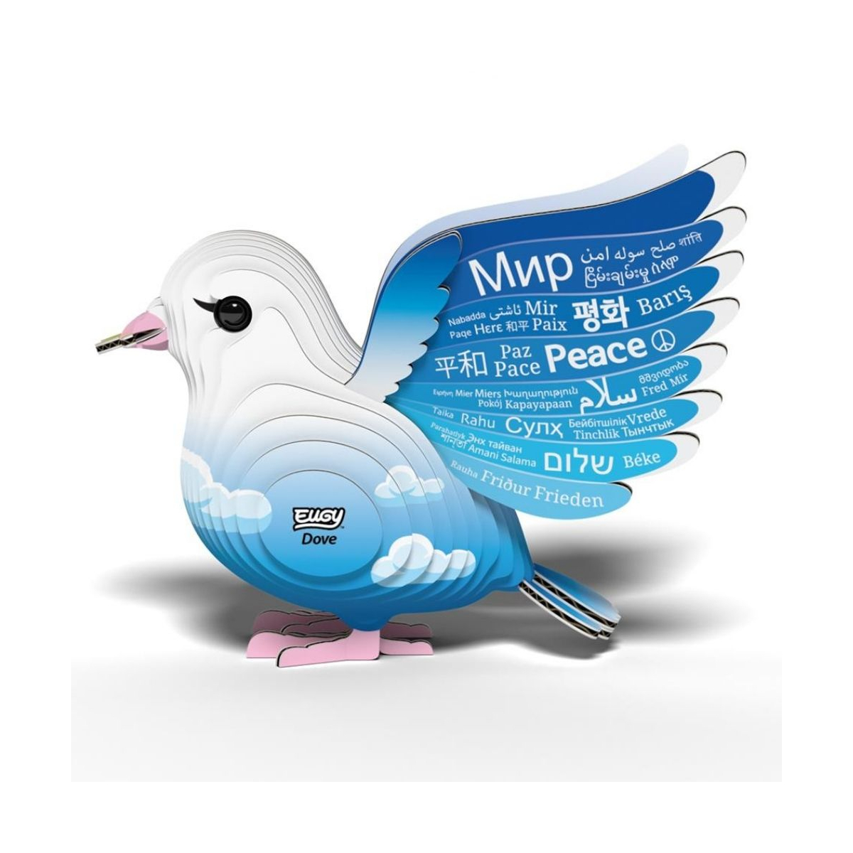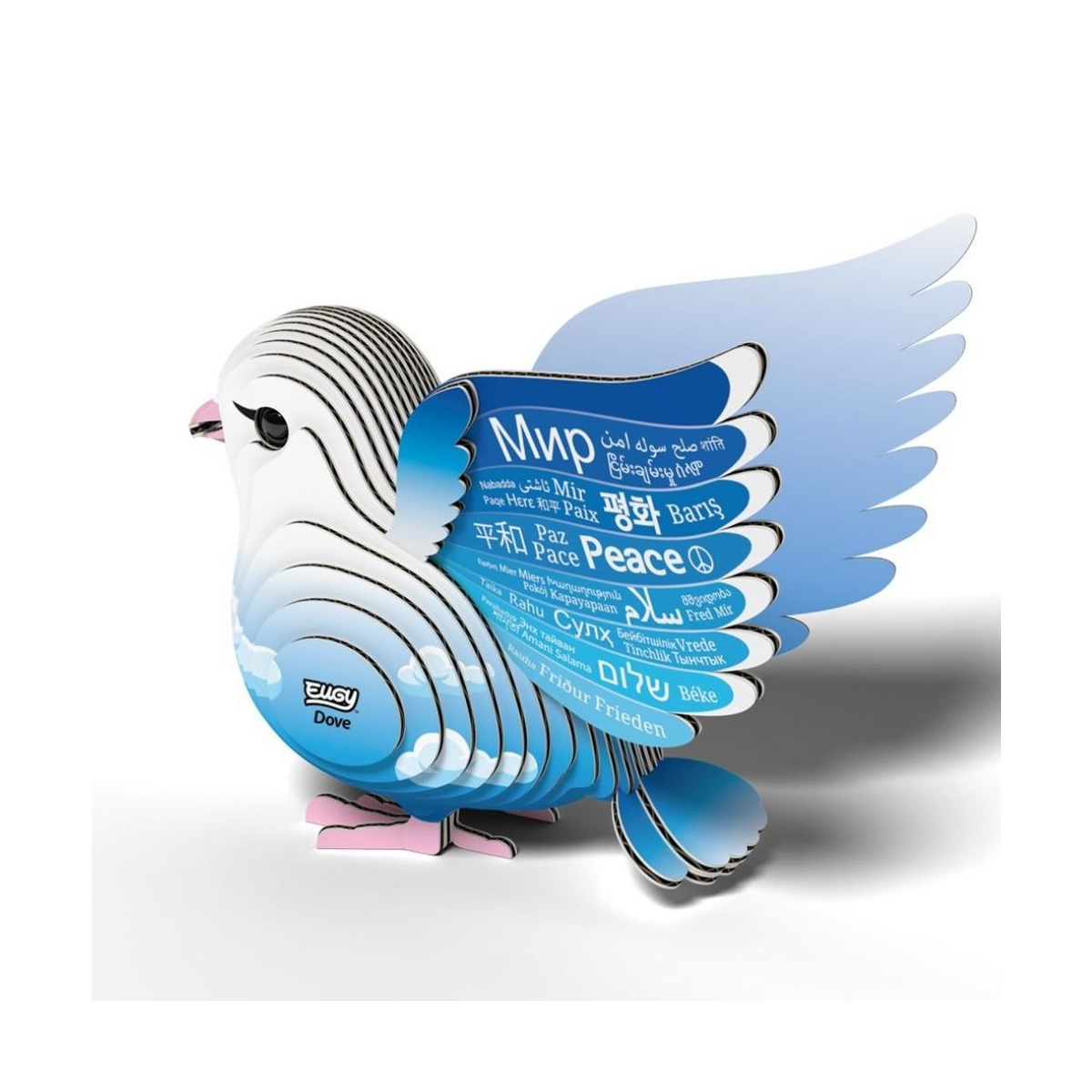 Assemble la colombe Eugy 3D, un symbole de paix en carton recyclé. Un puzzle écologique, éducatif et poétique à construire pour petits et grands.