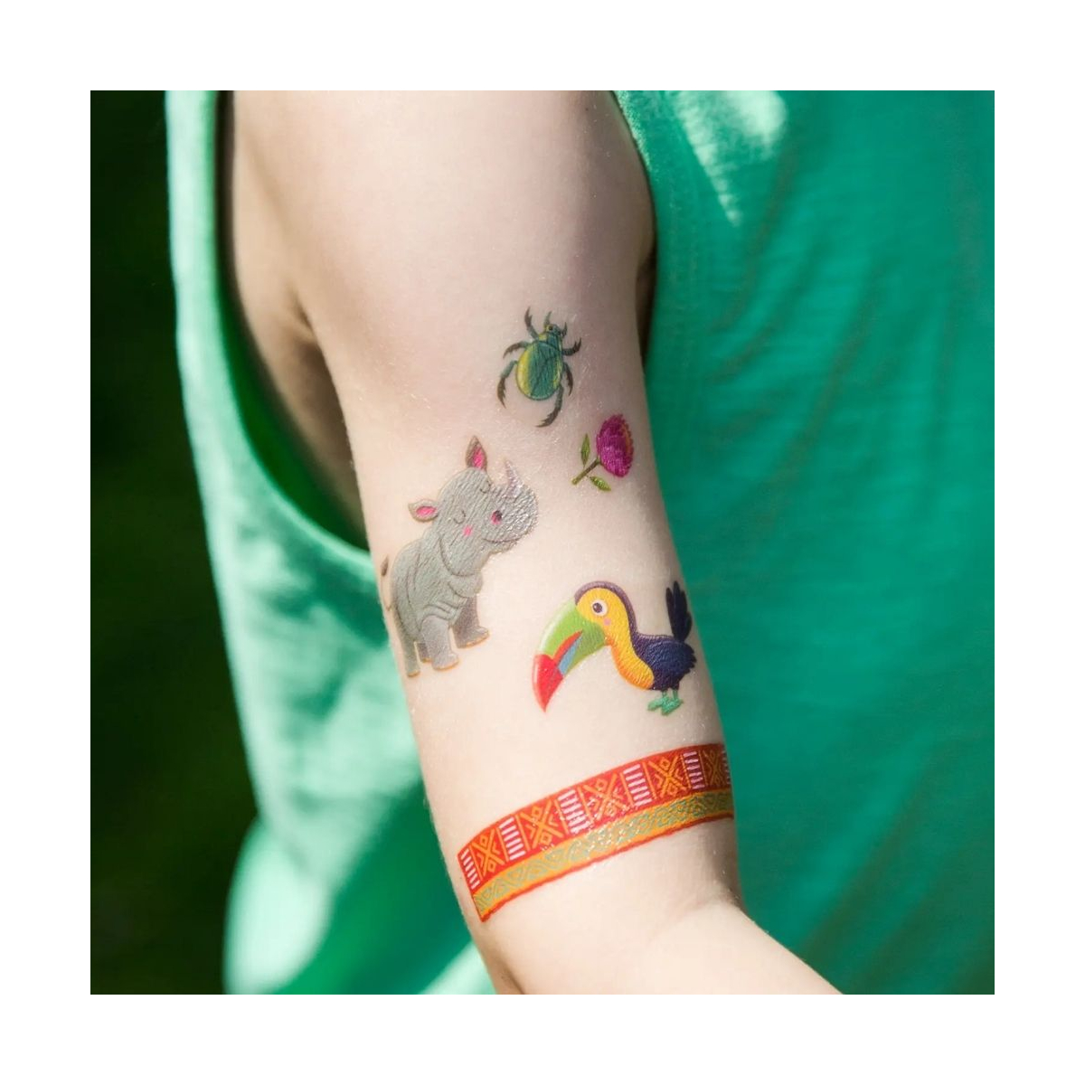 Ces tatouages sont imprimés à base d’encres végétales, testés dermatologiquement et certifiés selon la norme CE Jouets. Leur texture douce garantit une application simple et rapide. Plusieurs tailles de motifs permettent de varier les styles selon les envies. Ton tatouage se retire facilement avec du lait démaquillant ou de l’alcool à 70 °, pour un usage sans souci.