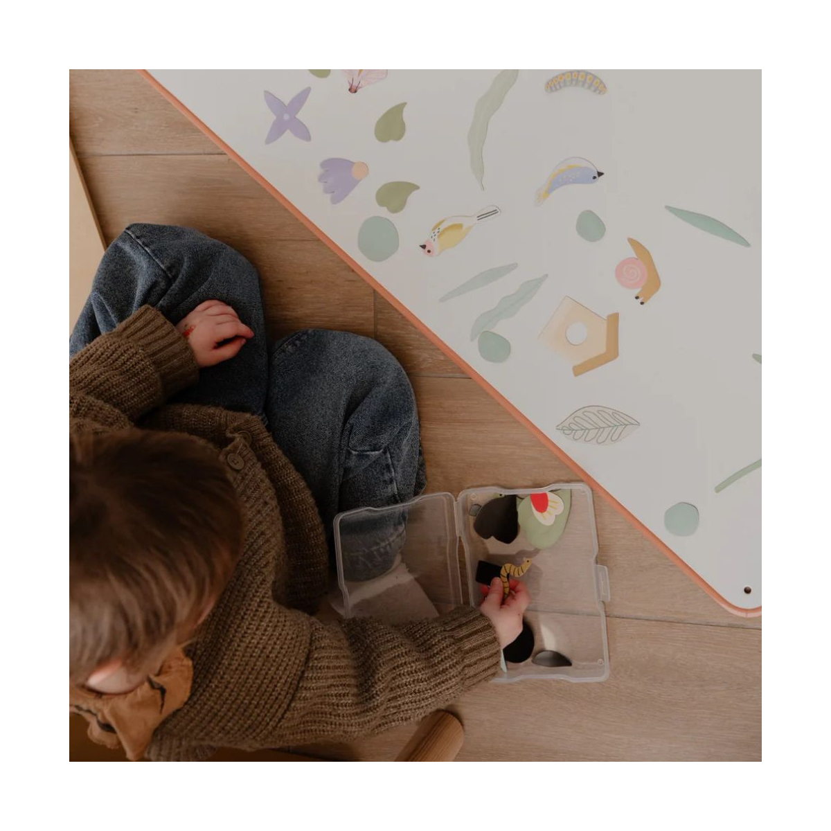 Transformez le frigo en prairie enchantée avec le jeu magnétique Le Jardin. Un univers poétique et éducatif pour découvrir les fleurs, les insectes et la biodiversité dès 3 ans.