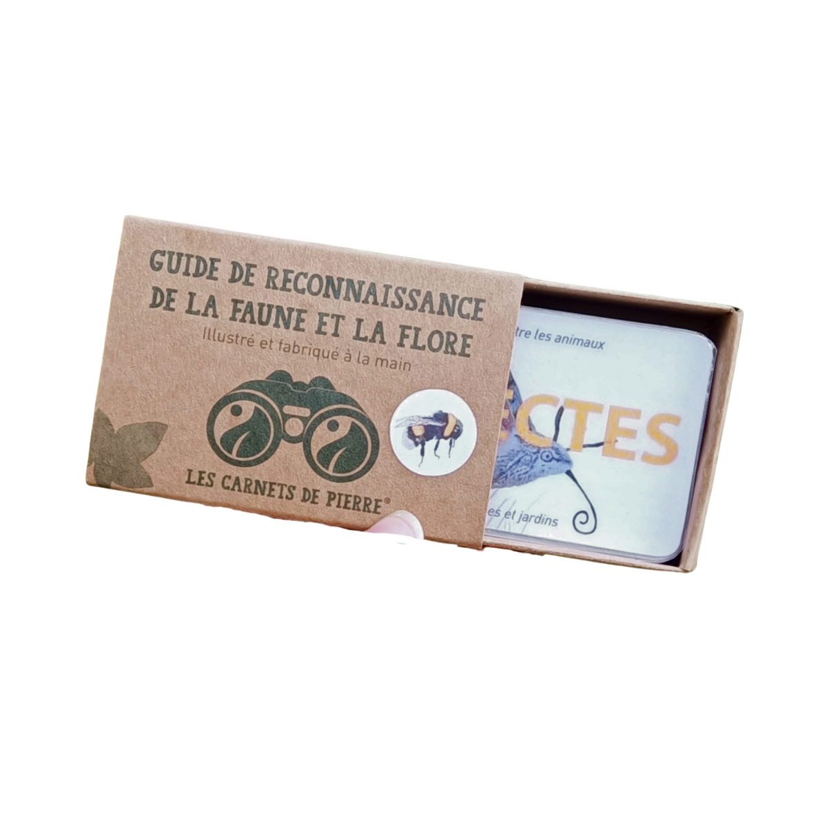 Carnet insectes des jardins fait main, zéro déchet et résistant à l’humidité. Guide pratique pour reconnaître plus de 70 espèces lors de vos balades.