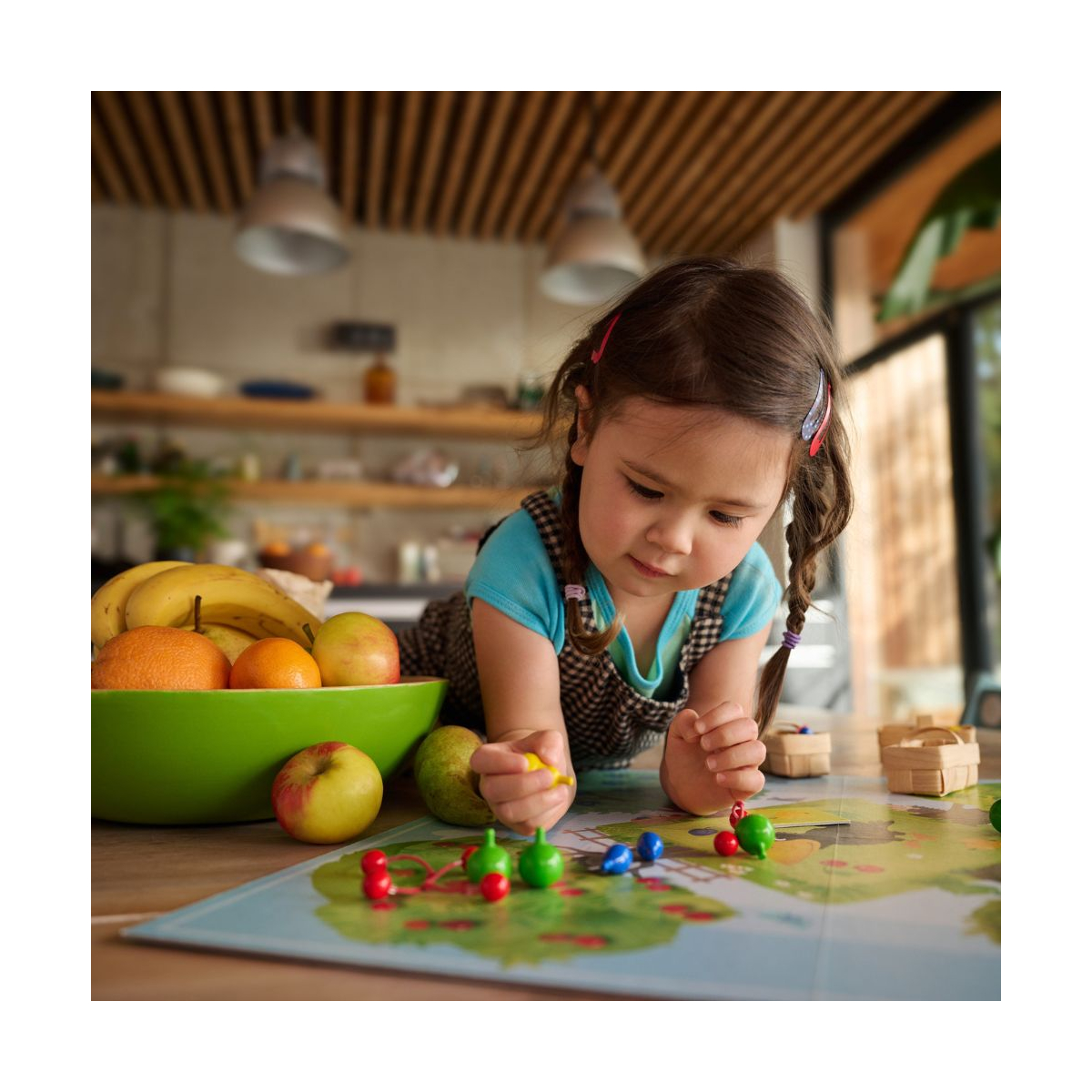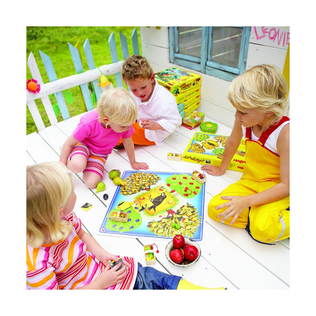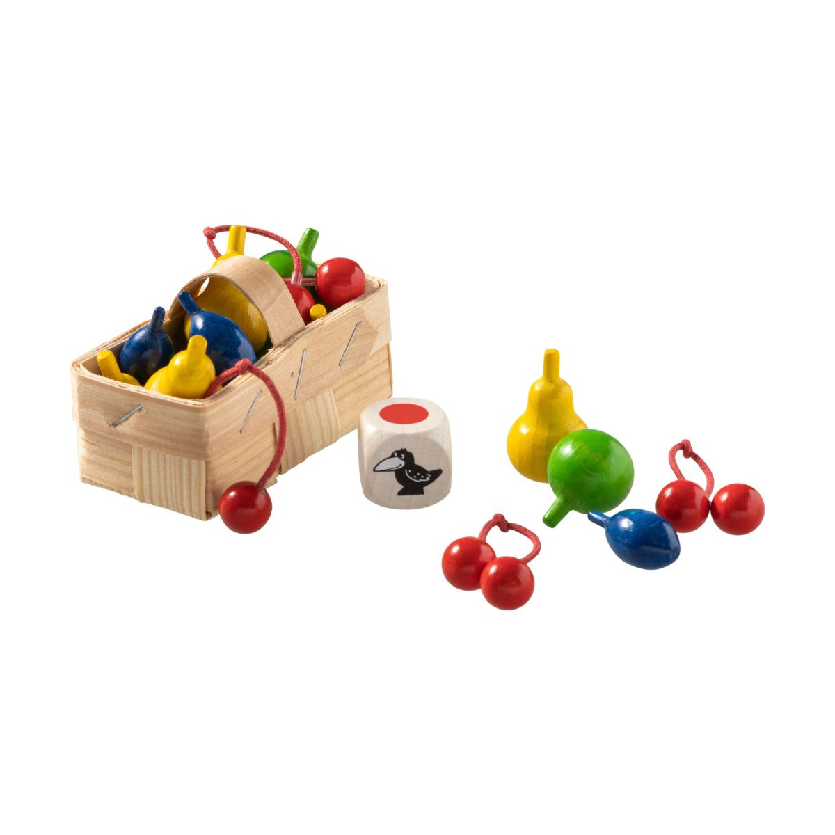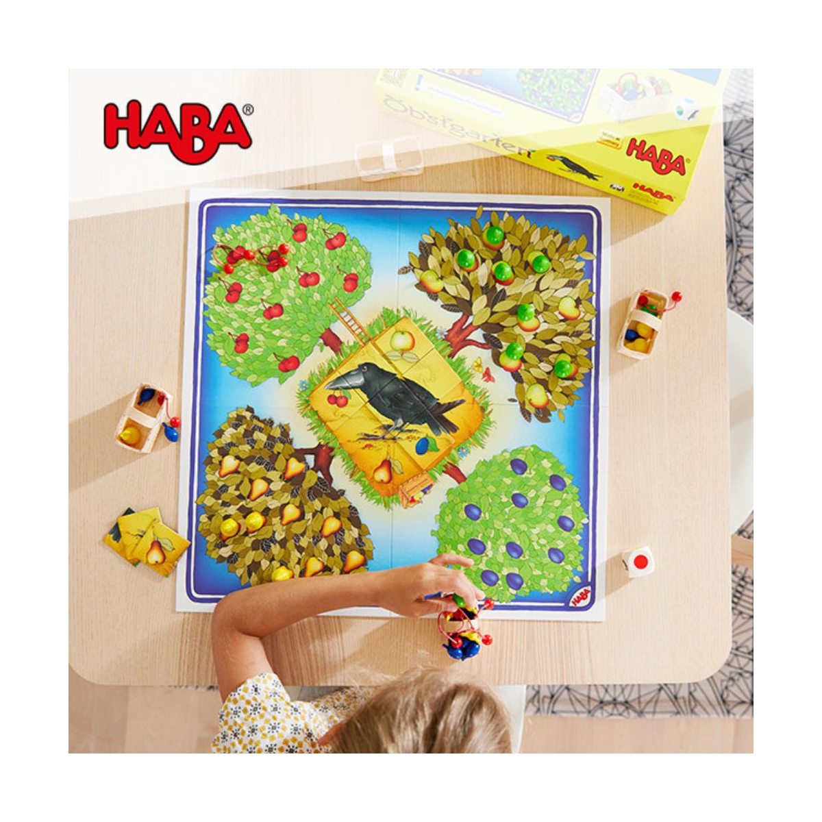 Découvrez Le Verger de HABA, un jeu coopératif dès 3 ans. Ensemble, cueillez les fruits avant le corbeau ! Pièces en bois, règles simples et parties rapides pour un moment ludique et éducatif.