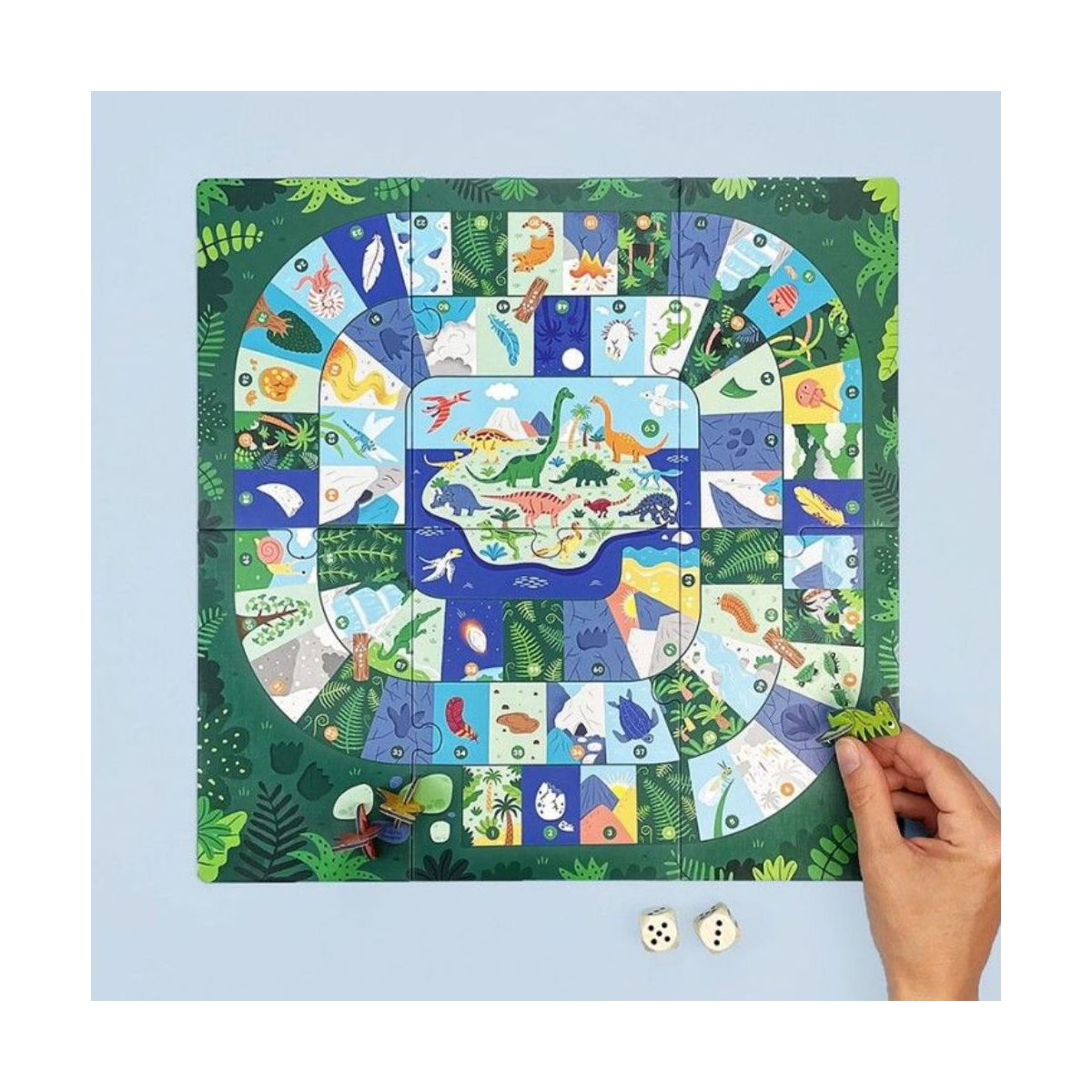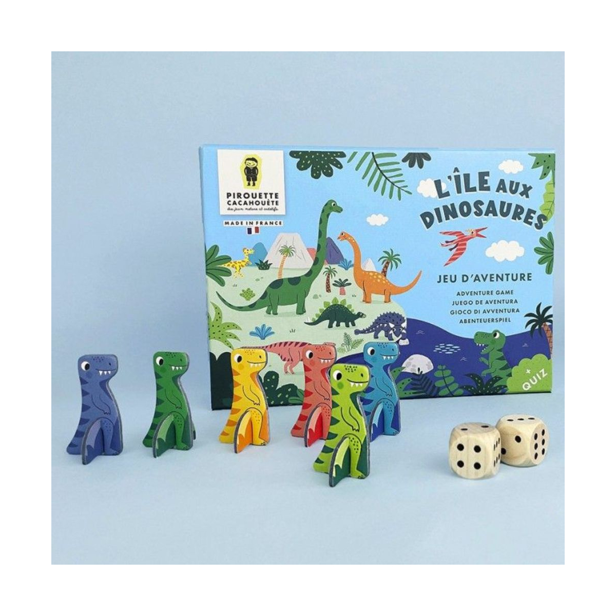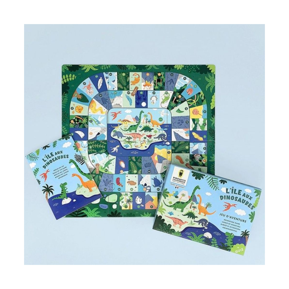 Conçu avec soin et fabriqué en France, ce jeu respecte l’environnement et valorise l’apprentissage par le jeu. Grâce à son quizz de 63 questions et défis à télécharger, les enfants approfondissent leurs connaissances sur les dinosaures et leur écosystème. Le livret pédagogique inclus, traduit en quatre langues, explique les règles du jeu et les différentes cases du plateau pour une immersion complète dans l’univers préhistorique.