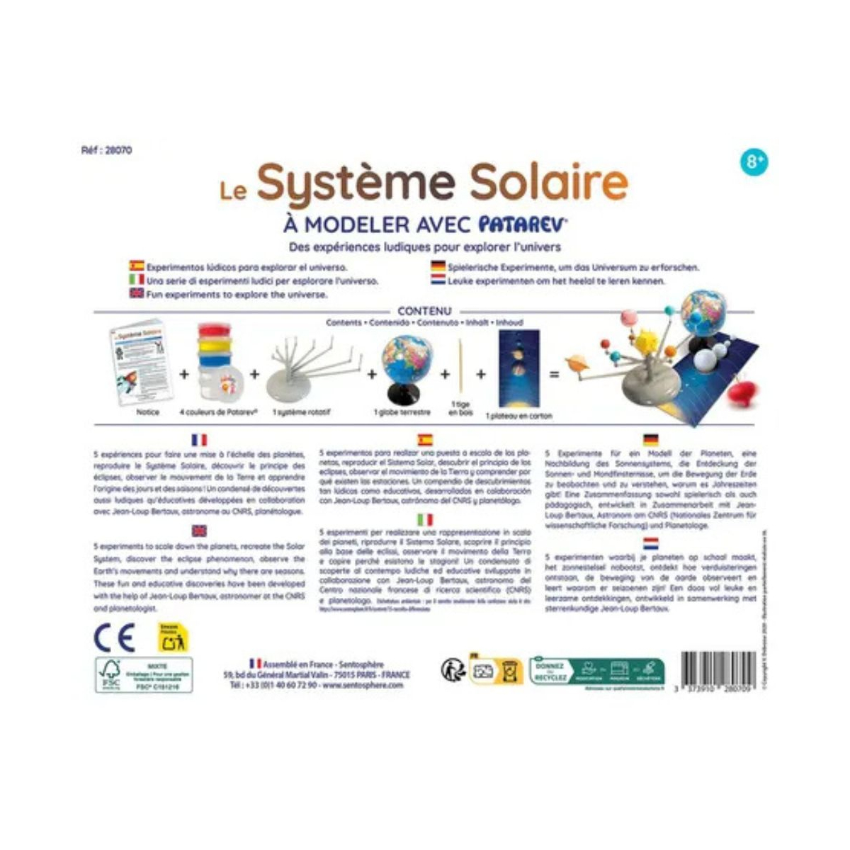 Grâce à la Patarev, une pâte à modeler créative, il sera possible de faire une mise à l’échelle des planètes, tout en découvrant leurs particularités, avant de construire un mini Système Solaire et d’observer le principe des éclipses.