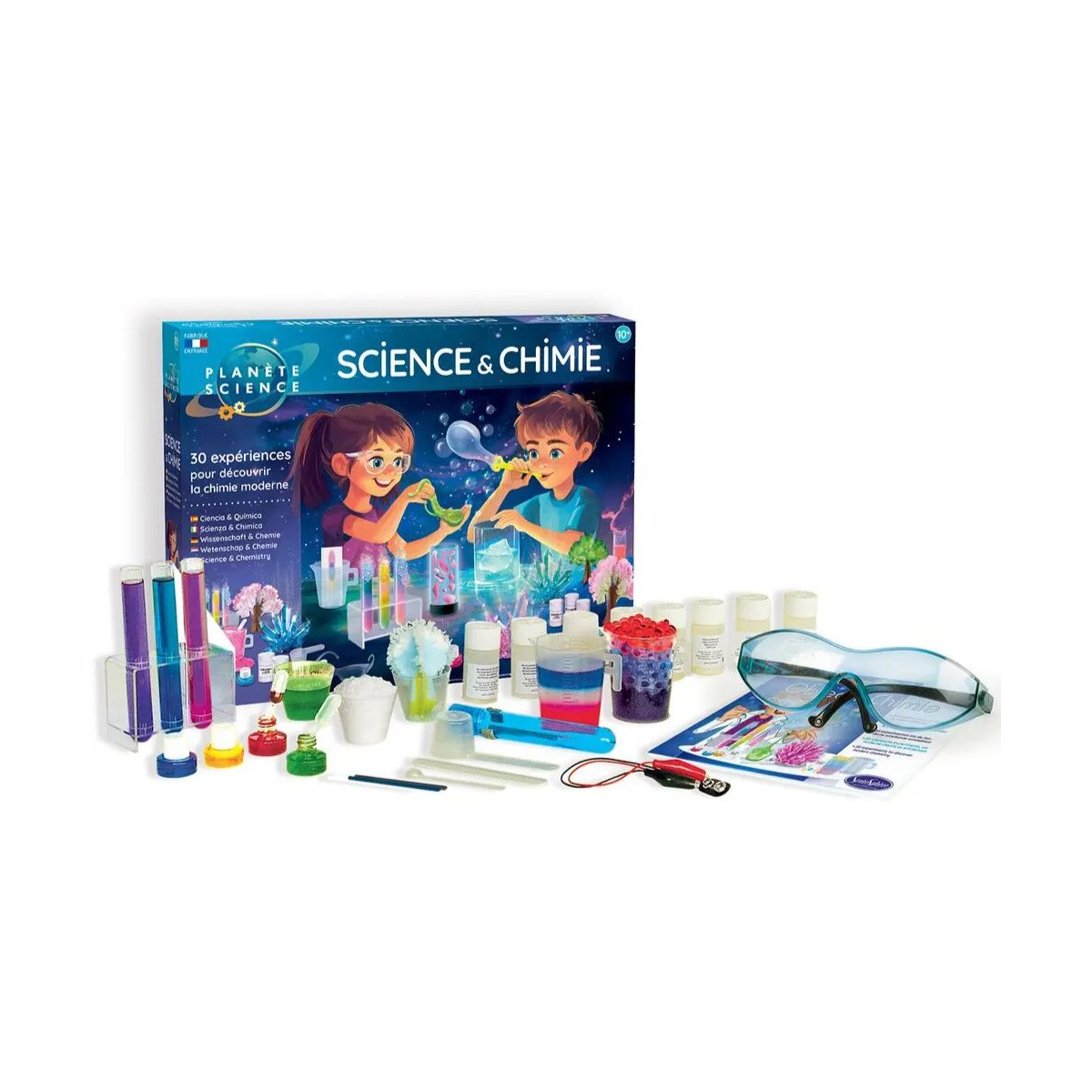 Initiez les enfants à la science de manière ludique et captivante grâce à ce coffret complet de chimie ! Ce petit laboratoire leur permet de réaliser 30 expériences fascinantes à l’aide de 12 matières premières différentes. Fabrication de gels, de neige artificielle, de bulles ou encore expériences effervescentes… chaque activité révèle les secrets de la matière et des réactions chimiques.