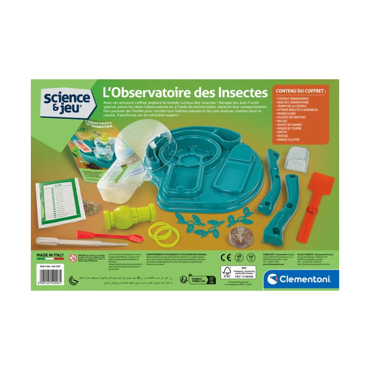 Ce laboratoire comprend un outil pour attraper les insectes sans les blesser, avec deux systèmes d’ouverture pour manipuler vos petits sujets en toute sécurité. Il est également possible de réaliser des expériences botaniques, offrant une approche complète de la nature et de la science. Adapté dès 7 ans, il constitue une excellente introduction à l’étude des insectes et du monde vivant. Conçu et fabriqué en Italie, il allie sécurité, qualité et pédagogie.