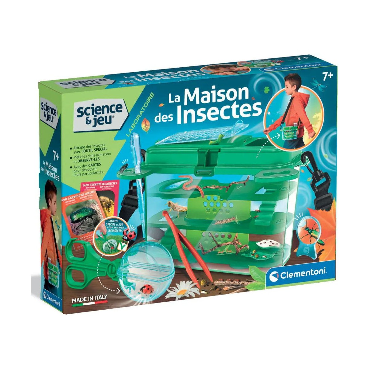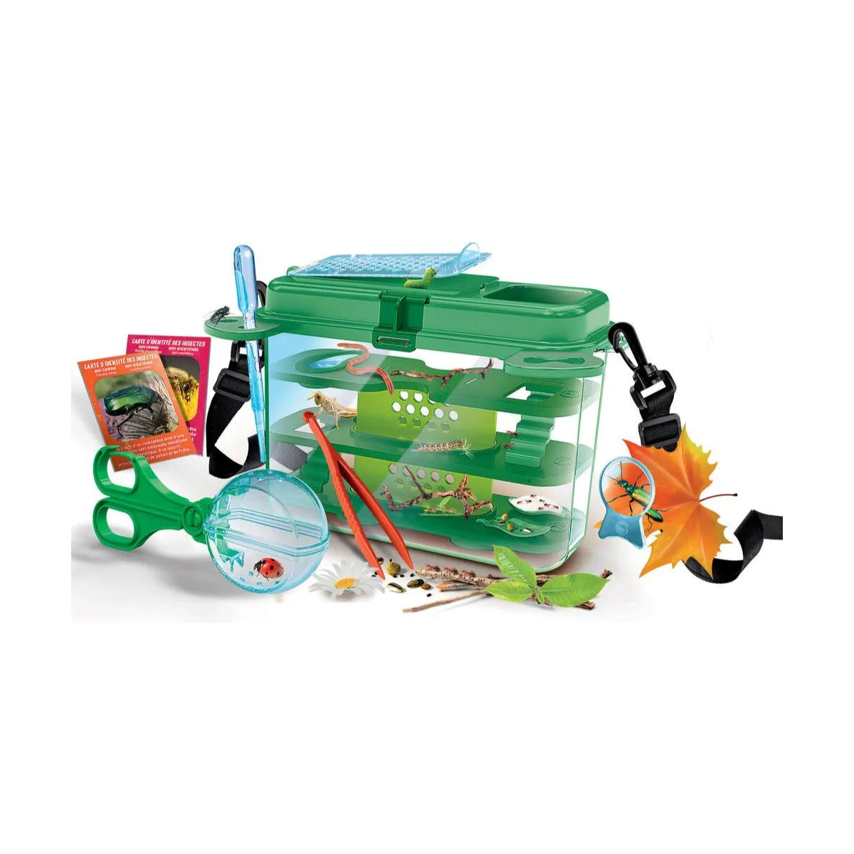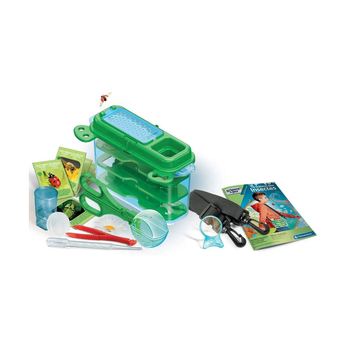 Coffret scientifique pour créer une maison d’insectes et observer leur monde. Comprend module transportable, loupe, pinces et manuel illustré. Fabriqué en Italie.