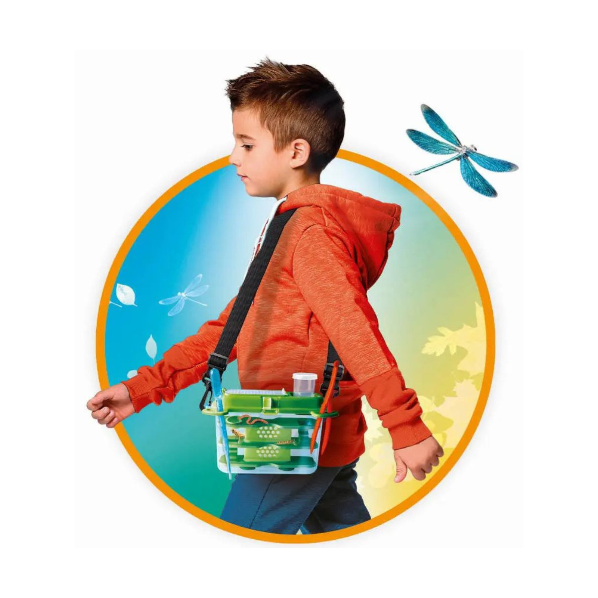 Le coffret comprend tous les outils nécessaires : pince, loupe, récipients, pince attrape-insecte et bandoulière pour transporter le module facilement. Le manuel illustré guide l’enfant pas à pas et fournit de nombreuses informations sur le monde des insectes, permettant un apprentissage pratique et instructif. Imaginé, conçu et développé en Italie, ce kit combine qualité, sécurité et pédagogie pour une expérience enrichissante.