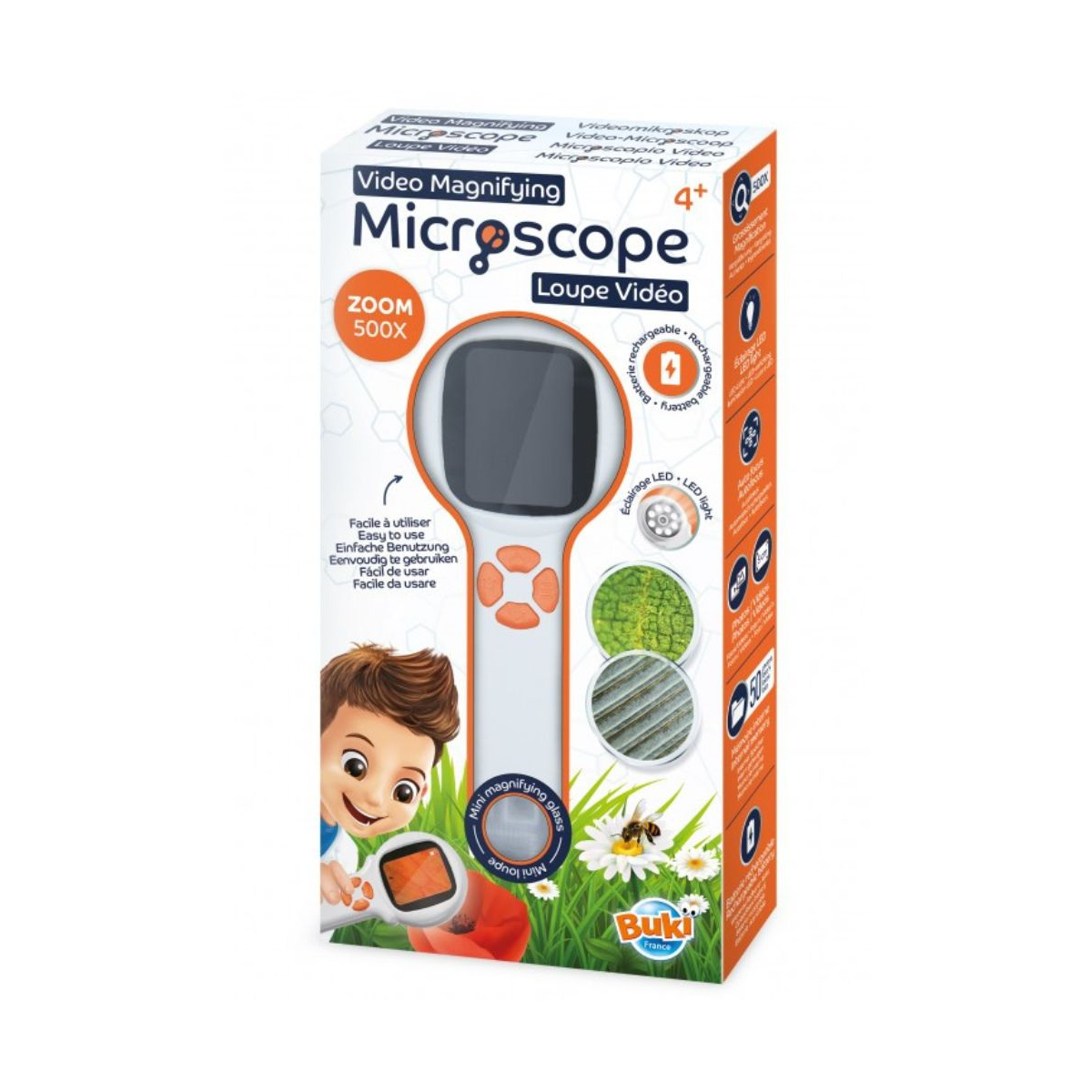 Microscope jouet Buki loupe vidéo 500X avec éclairage LED et écran 5 cm. Observez la nature, prenez photos et vidéos. Batterie et câble USB inclus.