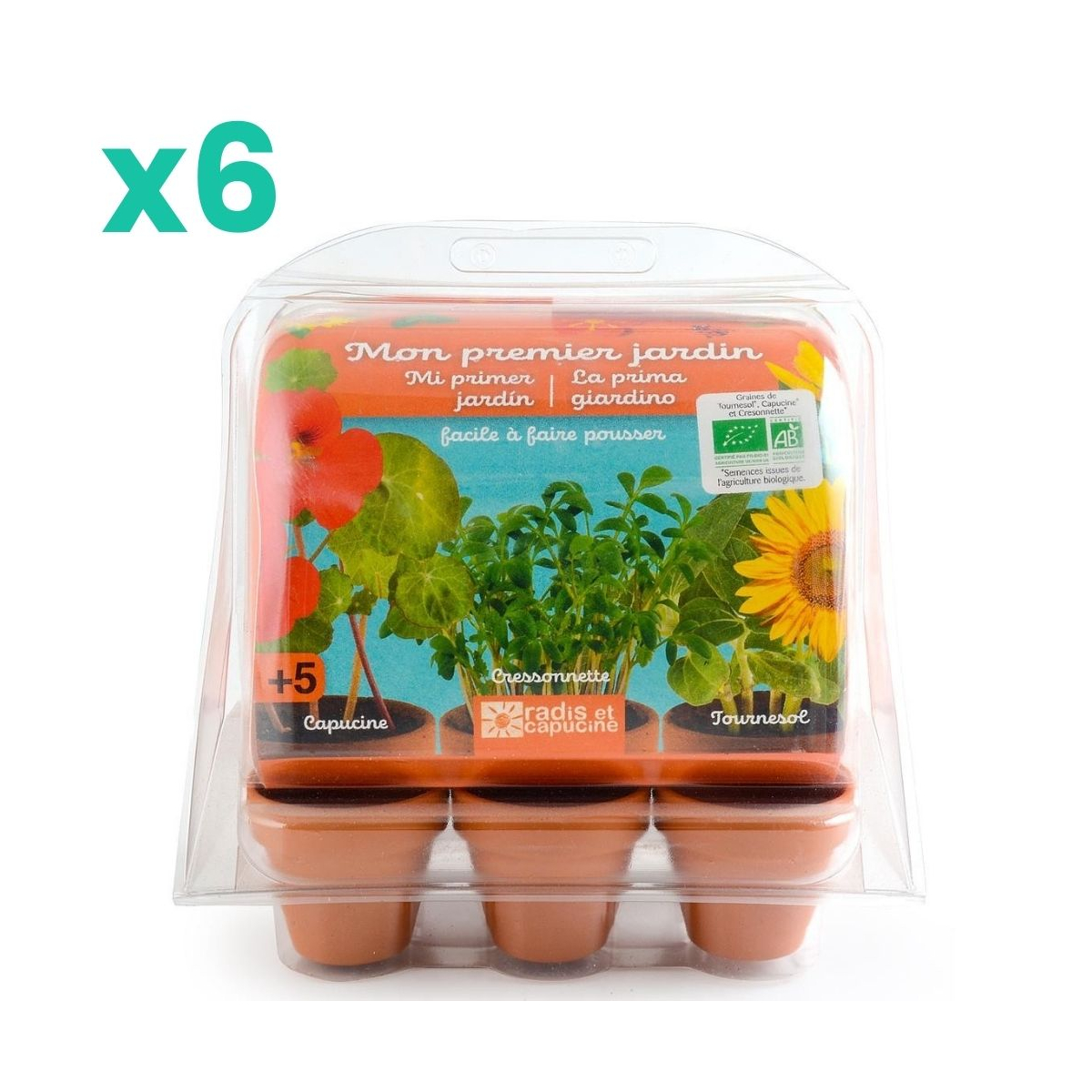 Offrez une activité ludique et éducative avec le lot de 6 mini serres Mon potager, spécialement conçu pour les enfants. Ce format en lot est idéal pour les écoles, les anniversaires ou les ateliers créatifs. Chaque mini serre permet de faire germer trois variétés de graines reproductibles bio : tournesol "Sunspot", cresson alénois et capucine naine.