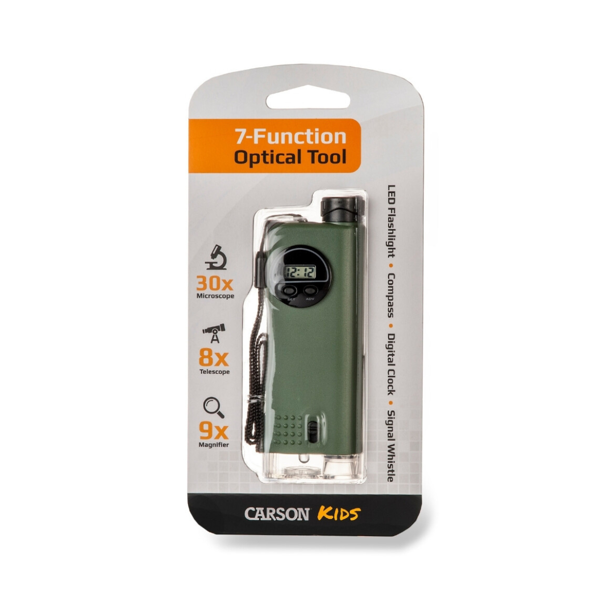 Microscope de poche X-Scope 7 fonctions : microscope, loupe, télescope, LED, boussole et horloge. Compact, léger et idéal pour les explorations en plein air.