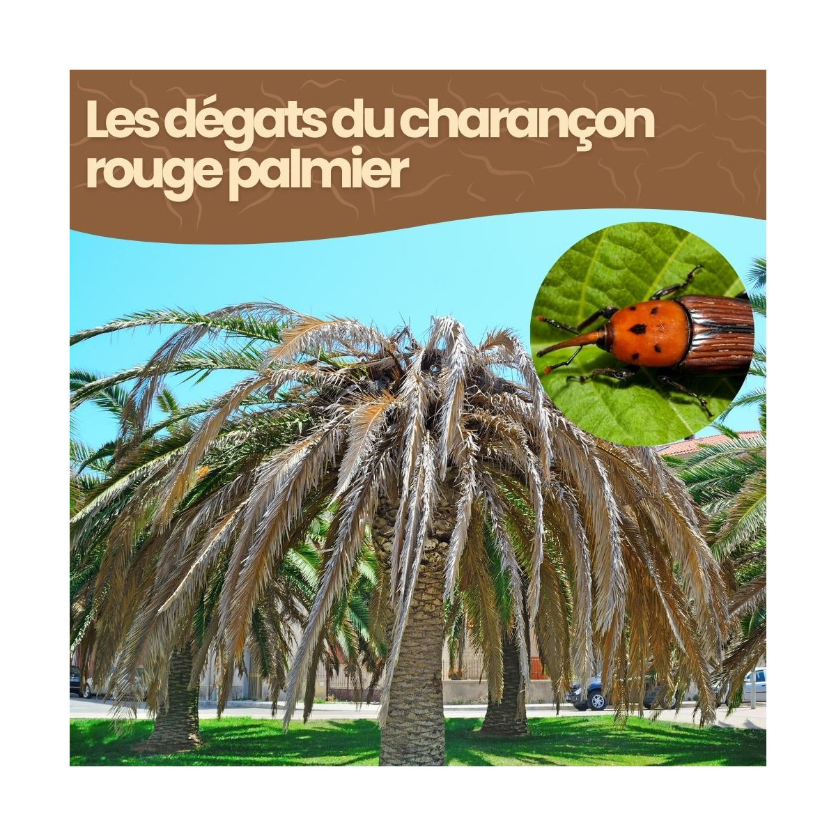Traitement curatif et préventif indispensable pour sauver vos palmiers. Les nématodes traquent les larves au cœur même du stipe.