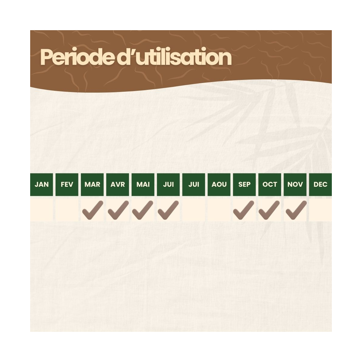 - Automne (Septembre à Novembre) : C'est la deuxième fenêtre stratégique. Les larves nées en été sont actives et préparent leur hivernage. Un traitement automnal réduit drastiquement la population qui passera l'hiver dans votre palmier.