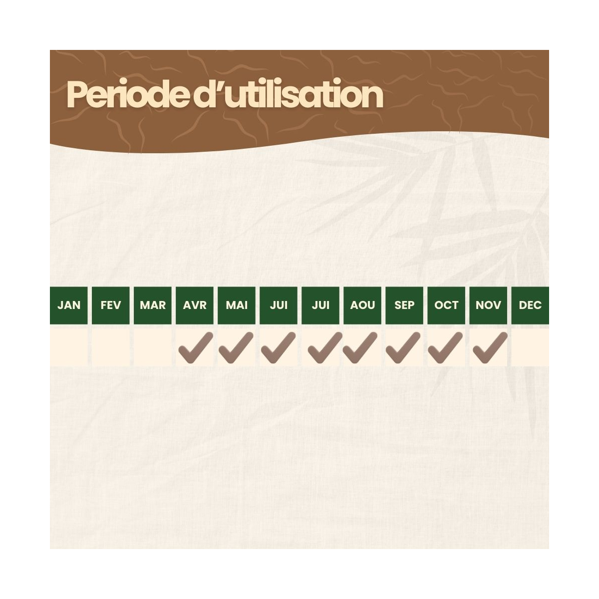 - Appliquer directement sur le sol autour du tronc, en remuant régulièrement.