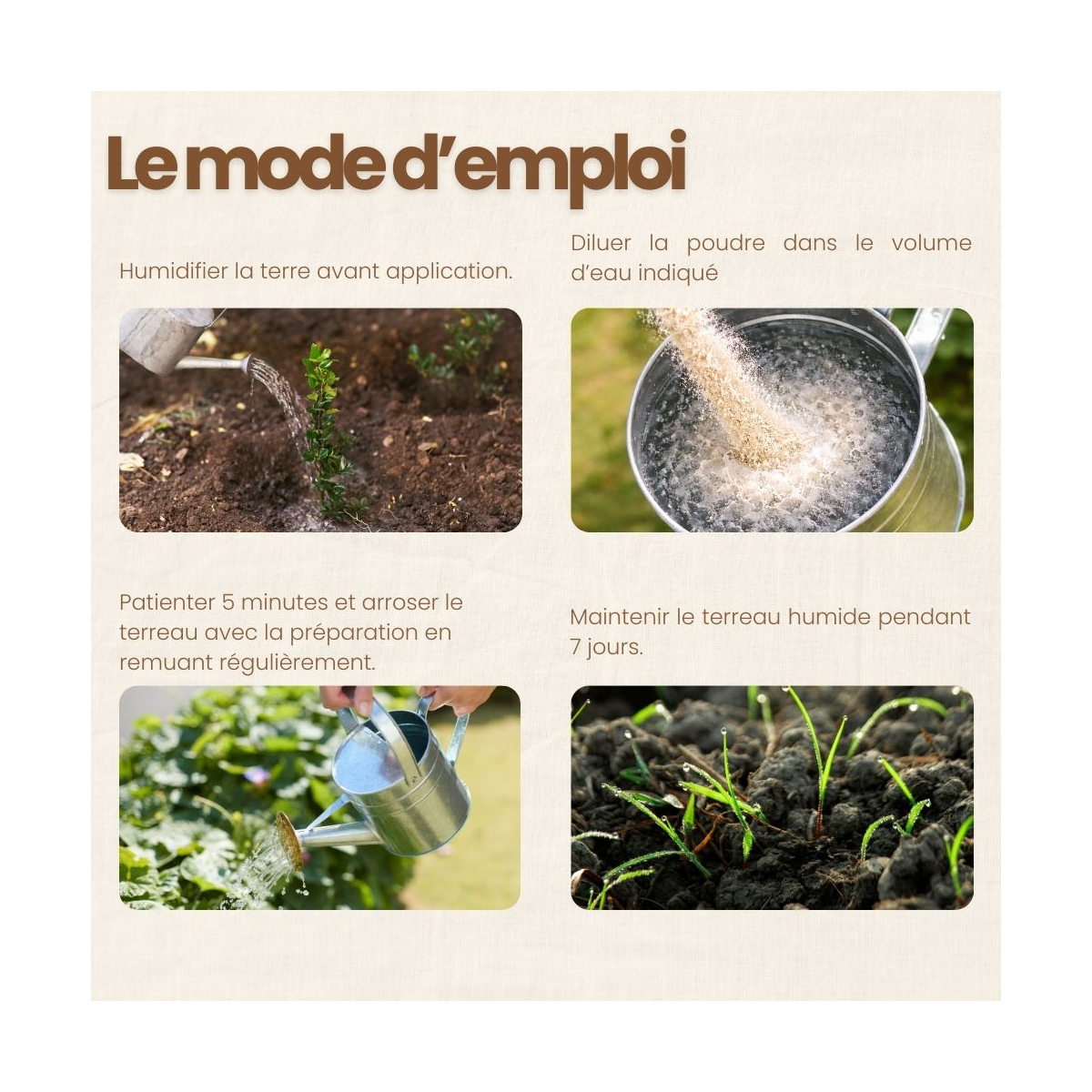 - Humidifier la terre avant application.