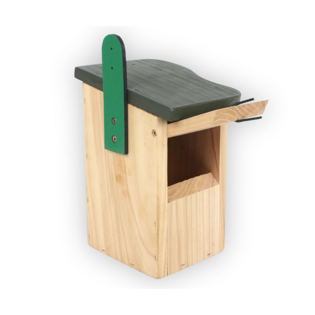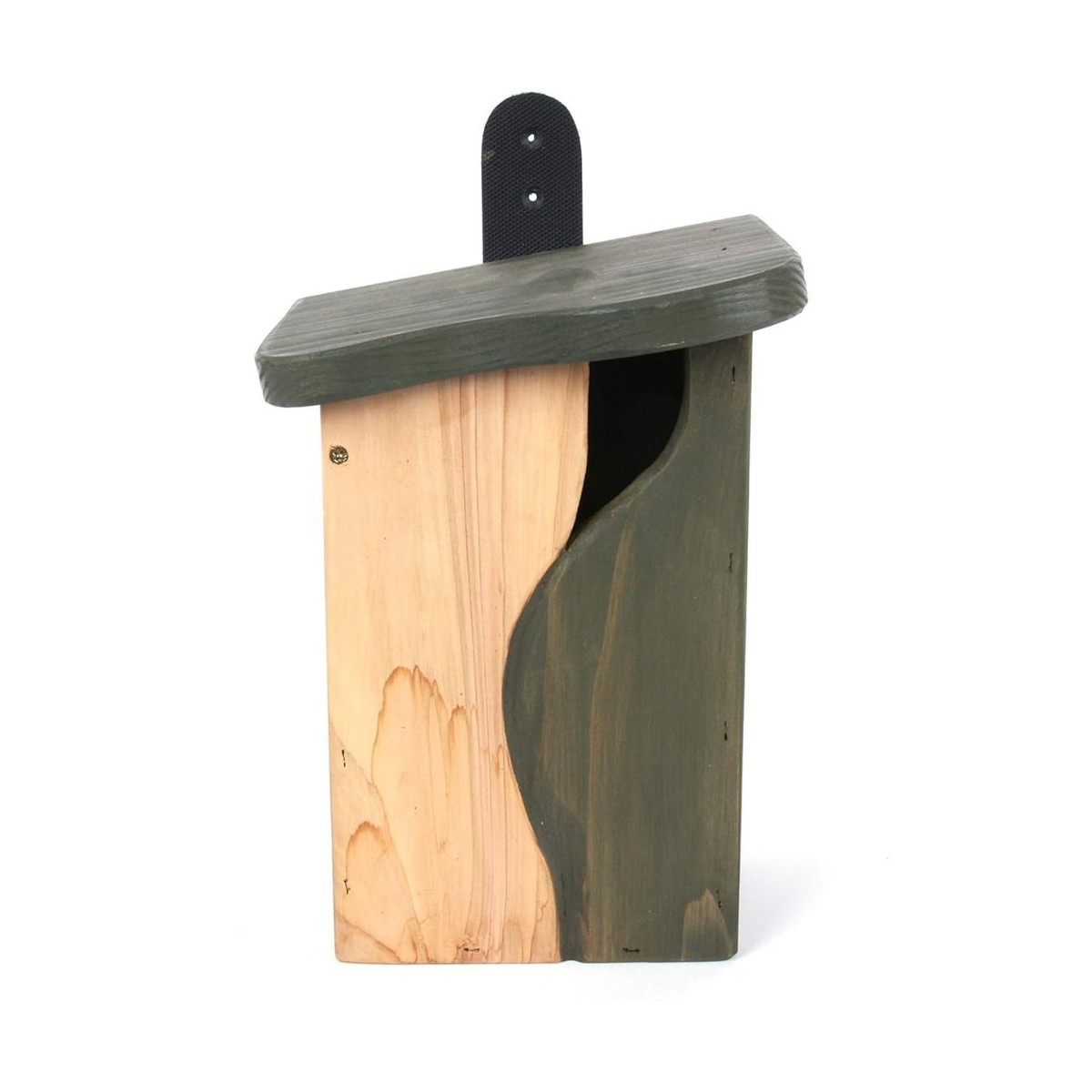 Nichoir Curve Cavity Nest Box : entrée naturelle, fixation simple, bois durable et crochet recyclé. Un abri idéal pour mésanges, moineaux et gobe-mouches.