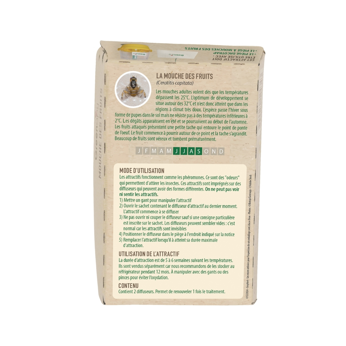 Plus efficace et bien plus facile à utiliser que le traitement chimique, il faut penser à conserver le second sachet de phéromone au réfrigérateur.