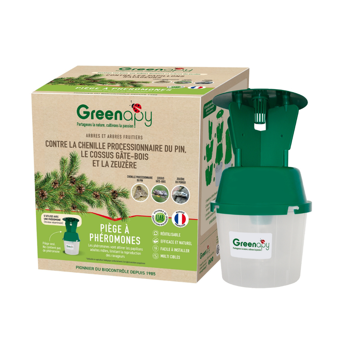 - Efficace pour identifier, suivre et contrôler les populations de chenilles processionnaires du pin, de cossus gâte-bois et de zeuzère du poirier