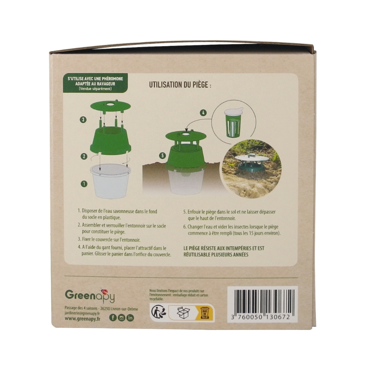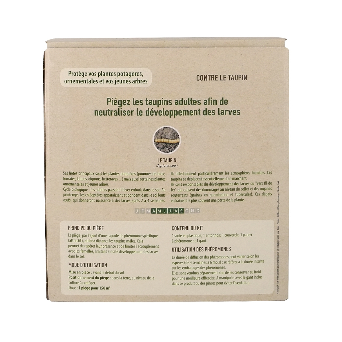 Le piège est conçu pour résister aux intempéries et être utile pendant plusieurs années. Il ne représente aucun risque pour les enfants et les animaux domestiques. Une solution naturelle pour lutter contre le taupin et son ver fil de fer.