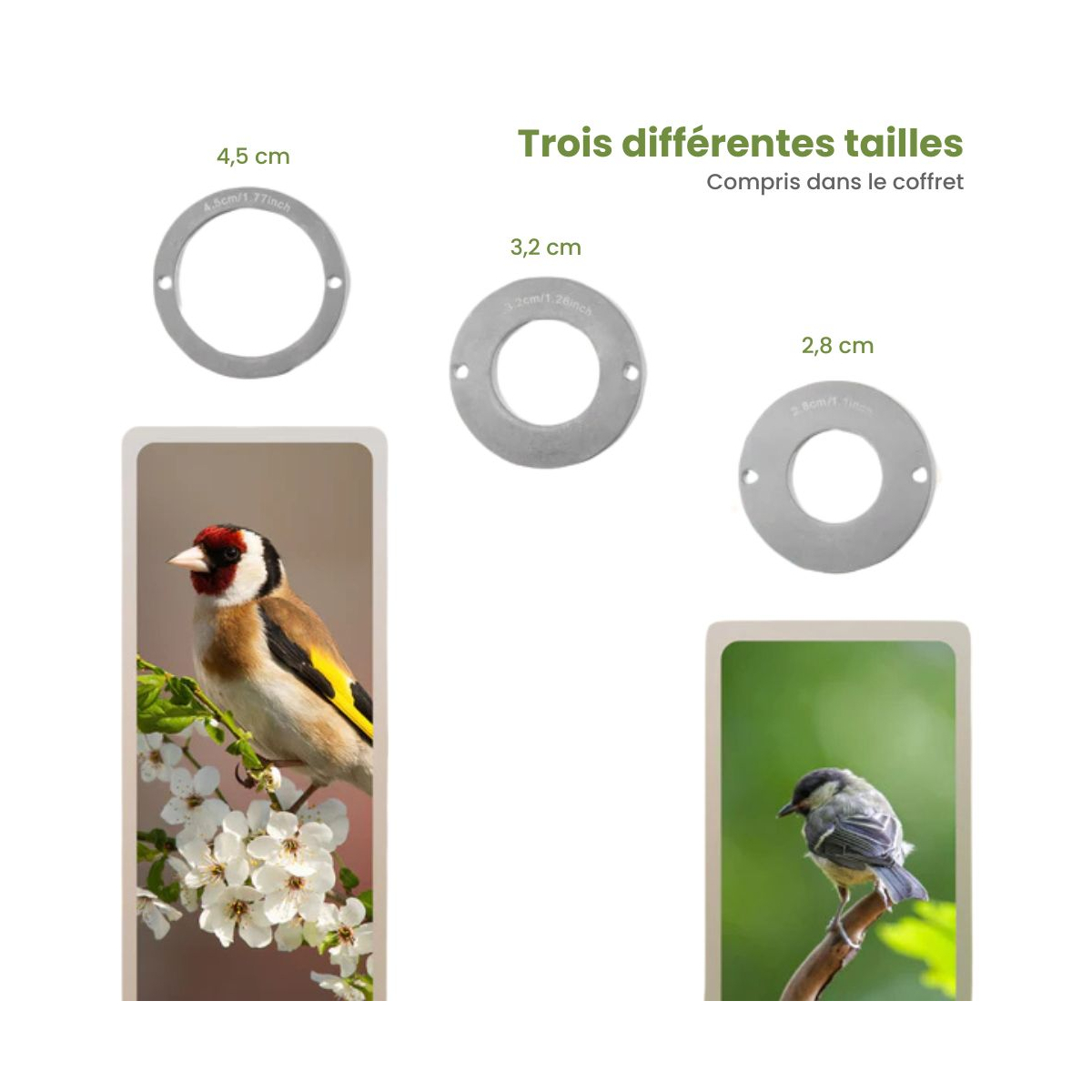 Le nichoir EZ se distingue par une polyvalence exceptionnelle. Grâce à ses trois ouvertures interchangeables, vous pouvez attirer différentes espèces selon la saison ou votre région. Les notifications en temps réel vous alertent dès qu’un oiseau est détecté, et vous pouvez consulter les vidéos ou photos dans l’application à tout moment.