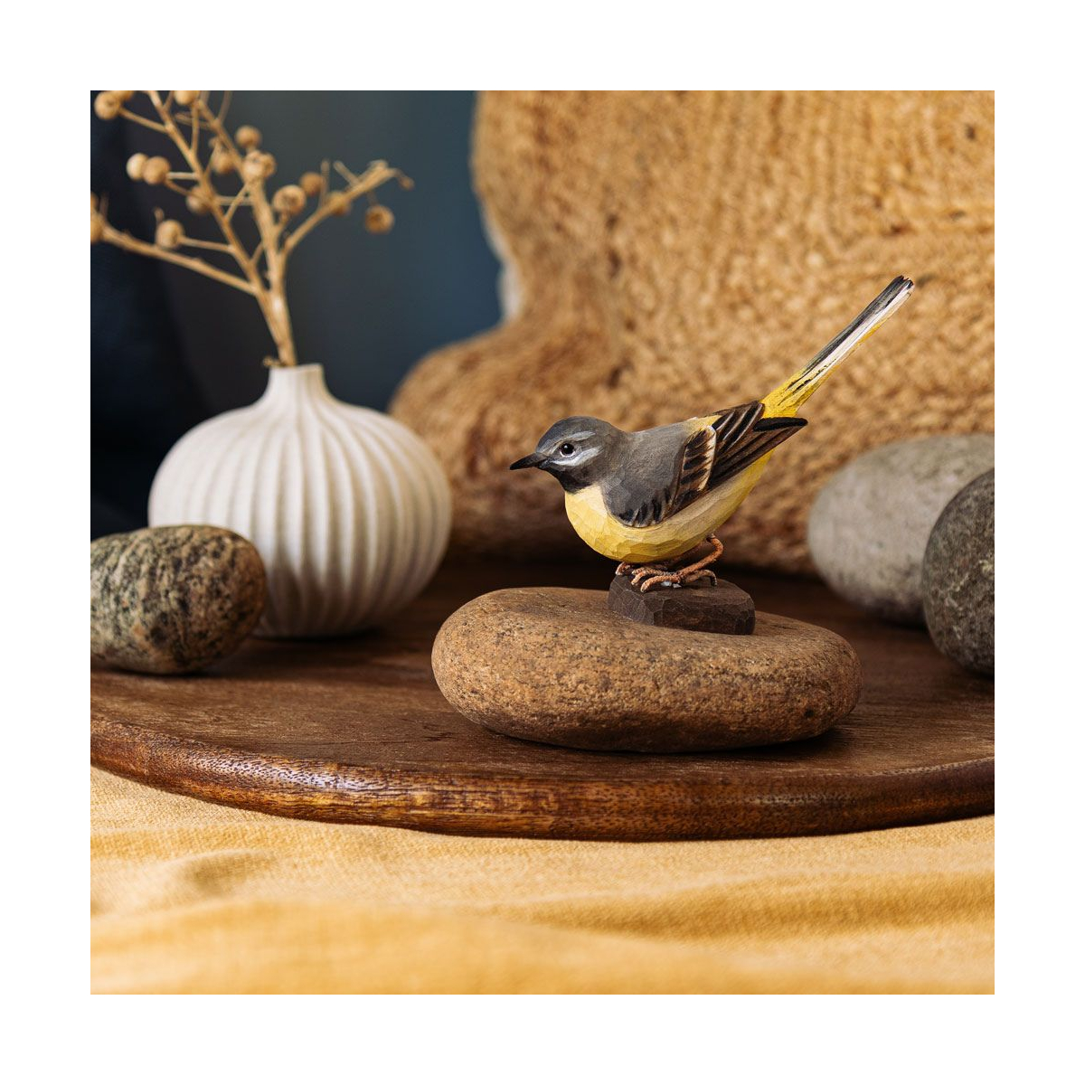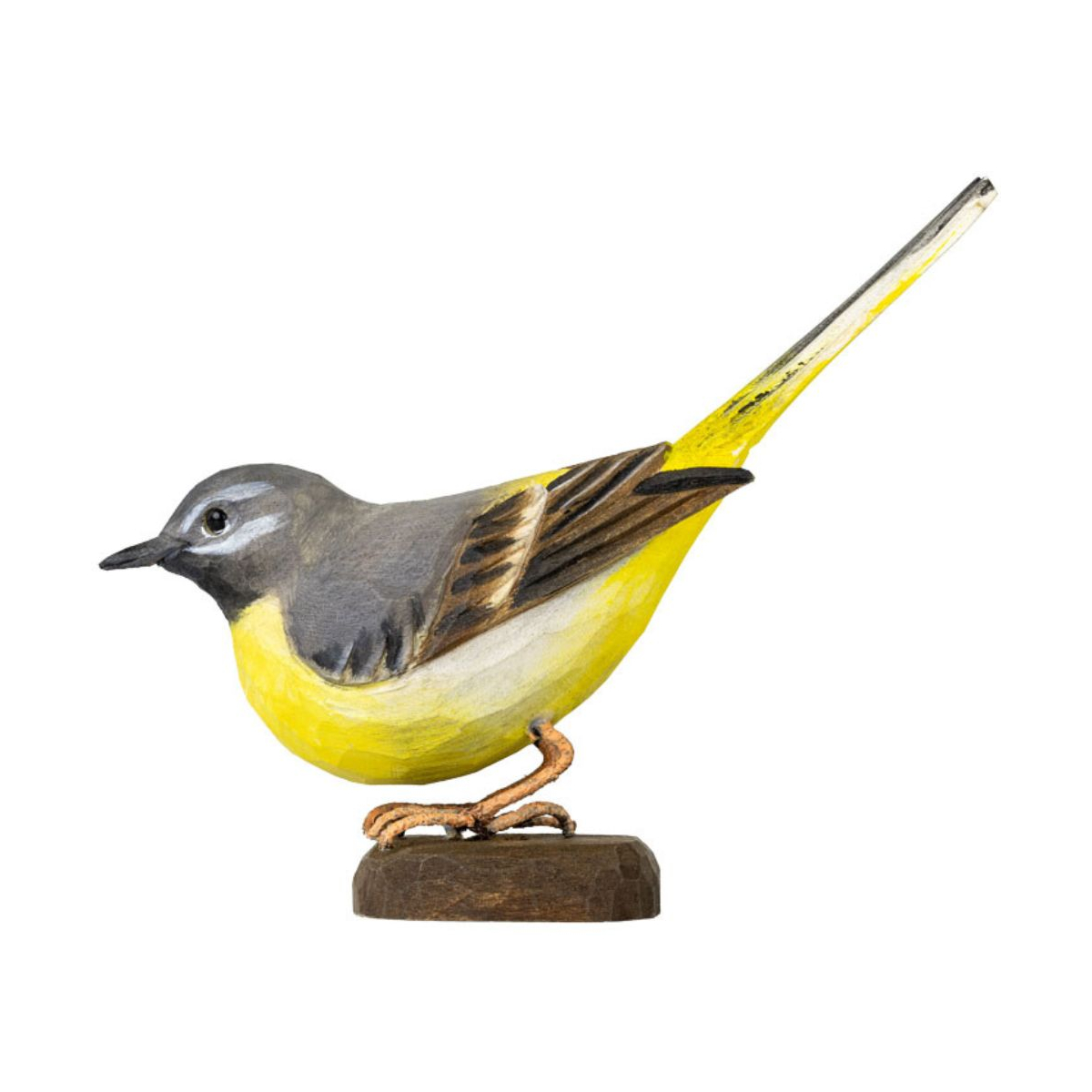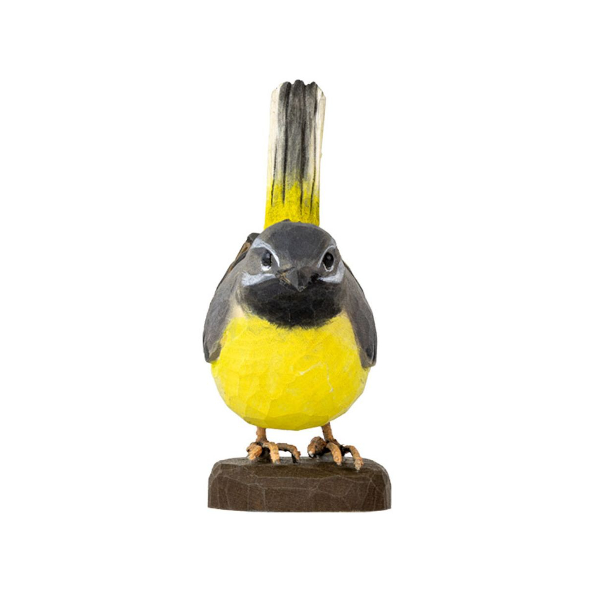 Figurine Décobird Bergeronnette des ruisseaux sculptée et peinte à la main. Objet décoratif en bois réaliste, idéal pour les passionnés d’oiseaux et de nature.