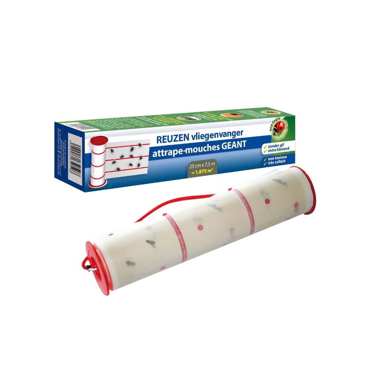 Attrape-mouches géant BSI, rouleau adhésif réutilisable de 7,5 m. Contrôle écologique des mouches et insectes volants. Sans poison, respectueux de l’environnement, idéal pour cuisines, écuries, et plus !